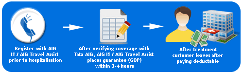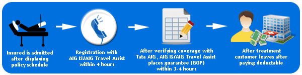 After Verifying coverage with Tata AIG, AIG IS / AIG Travel Assist / United Healthcare places guarantee of payment within 3 - 4 hours.