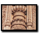 Qutab Minar is the 2nd tallest architecture (73 metres) in India after Fateh Burj in Chappar Chiri at Mohali (100 meters). Located in Delhi, and is made of red sandstone and marble.