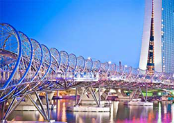 The footbridge, originally known as Double Helix Bridge connects the Marina Centre and South Marina Bay over the Singapore River.