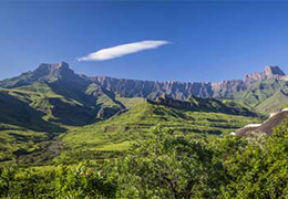 The Drakensberg is the highest mountain range in Southern Africa, rising to 3,482 meters (11,420 ft) in height.