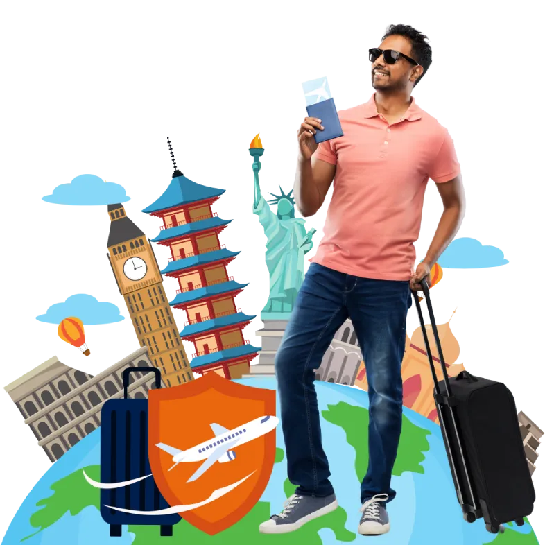 • Health insurance cover in foreign countries ranging from $50,000 to $10,00,000 US dollars
