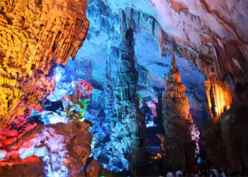 Reed Flute Cave known as “the Palace of Natural Arts” is located in the northwest of Guilin in southern China.