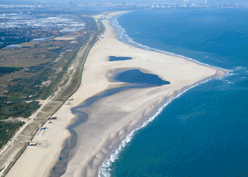 The sand engine is an experiment in the management of dynamic coastline. The first one was run off South Holland in the Netherlands.