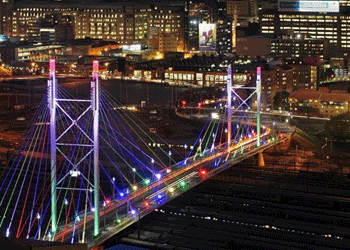 Nelson Mandela Bridge is a bridge in Johannesburg, South Africa. It is the fourth of five bridges which cross the railway lines and sidings located just west of Johannesburg Park Station, the first being the Johan Rissik Bridge adjacent to the station.
