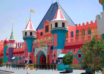 Rides, games & other amusements are offered at this large theme park with a dramatic design.