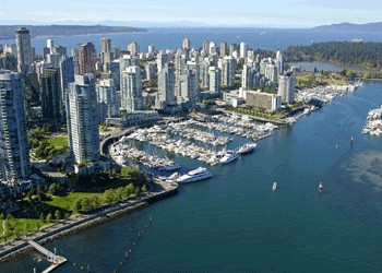 Coal Harbour is a downtown area known for its marina, mountain views, and mix of casual and upscale waterside eateries. Seaplanes take off in the shadow of gleaming condo towers near the modern, grass-roofed Vancouver Convention Centre.