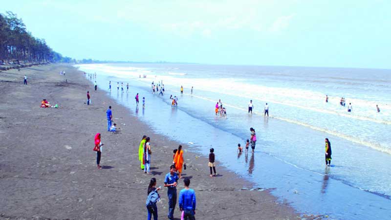 • This is long and white sand beach. You may see seagull and dockyard.