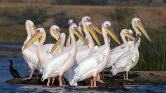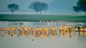 Species: Pits migratory bird population includes rosy pelicans, barnacle geese,flamingoes, white storks,Anseriformes, brahminy ducks and herons etc.