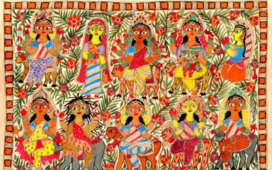 Miniature paintings are those executed on a very small scale on perishable material such as paper, cloth, etc., though this style had been perfected by artisans under the various rules, not many remain today. Prime examples are the Rajasthani & Mughal miniatures.