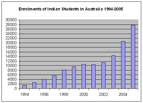 This contrasts with less than 500 Indian students in the early 1990's and the 10,000 Indian student enrollments in 2001.