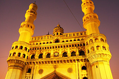 The Charminar, built in 1591 CE, is a monument and mosque located in Hyderabad, Telangana, India. The landmark has become a global icon of Hyderabad, listed among the most recognized structures of India.