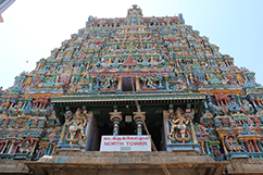 Meenakshi Amman Temple is a historic Hindu temple located on the southern bank of the Vaigai River in the temple city of Madurai, Tamil Nadu, India. It is dedicated to Parvati, known as Meenakshi, and her consort, Shiva, here named Sundareswarar.