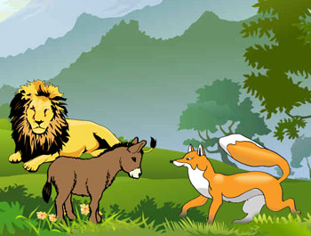 "You know my plight. I cannot move out of this place. However, if you manage to lure some animal to come here, I will kill him and both of us can have a good meal," said the lion. So, the jackal set out in search of some animal and saw a donkey feeding himself on weeds. The jackal approached him and said, "O my friend, please accept my regards. I have not seen you for a long time. You have become very weak. What is the reason?"