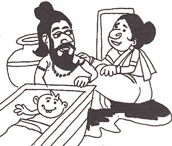 On reaching home, he talked to his wife about the mouse and they decided to convert the mouse into a young baby girl. The sage and his wife began to take care of the girl child and brought her up as their daughter. The child grew day by day to a beautiful maiden by the age of sixteen. At this age, the sage decided to find a match for the girl. He and his wife decided that the Sun God would be an ideal match for their girl.