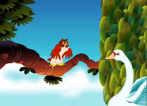 But the owl soon got bored of the place and told the swan, "I am going back to my home in the Lotus wood, and if you ever want to visit me you can visit me there." The swan, after many days once decided to pay a visit to the owl in the Lotus wood. On reaching Lotus wood, it could not find the owl, which was hiding in the dark hole. The owl asked the swan to take rest till daylight was over and told him that he could come out only at night. The swan decided to take rest.
